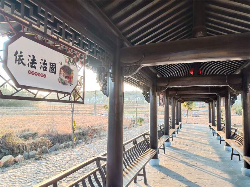 新丰乡新丰村法治文化长廊,位于新丰村法治文化广场,长廊长度近40米,宽4米,长廊内设置“宪法”“民法典”等法治元素。让长廊“说话”,让走廊“教学”,现已成为当地开展普法的新阵地,是一道亮丽的法治乡村风景线。
