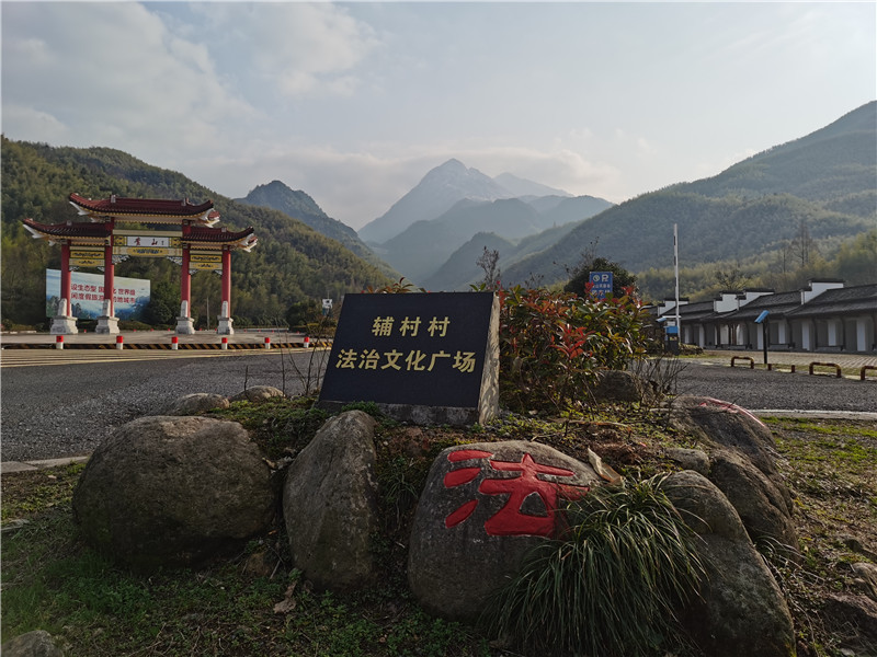 耿城镇辅村村法治文化广场位于辅村村二龙桥北门停车场,黄山北大门门牌楼旁。该广场始建于2017年,2019年结合农村综改项目进行了提升,新建了徽派连廊、凉亭等设施,为游客和村民提供了休憩场所。2022年自筹资金3.4万元,在该场所植入了法治橱窗、雕塑、插牌、吊牌等法治元素,一系列红色法治元素衬托出山更青水更绿,也让游客在休憩之余感受到了法治乡村的魅力。