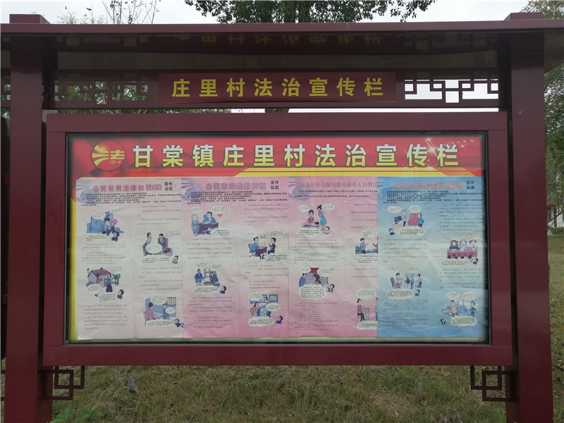 庄里村法治文化广场建成于2005年09月,广场面积约1200平方米,设有法治宣传栏4块、大型彩色电子显示屏1块,建有法治长廊亭2座,广场周围设置了法治宣传插牌约30个,在绿化道路设置了法治宣传石刻5处。该广场以法治宣传橱窗、普法之路、法治文化长廊亭等形式向群众宣传与生产生活息息相关的法律法规知识,让群众在潜移默化中强化法治理念,成为全民学法的一扇窗口,群众学法用法氛围浓厚。该村“宪法宣传周”等重大普法宣传活动都在此处举行。
